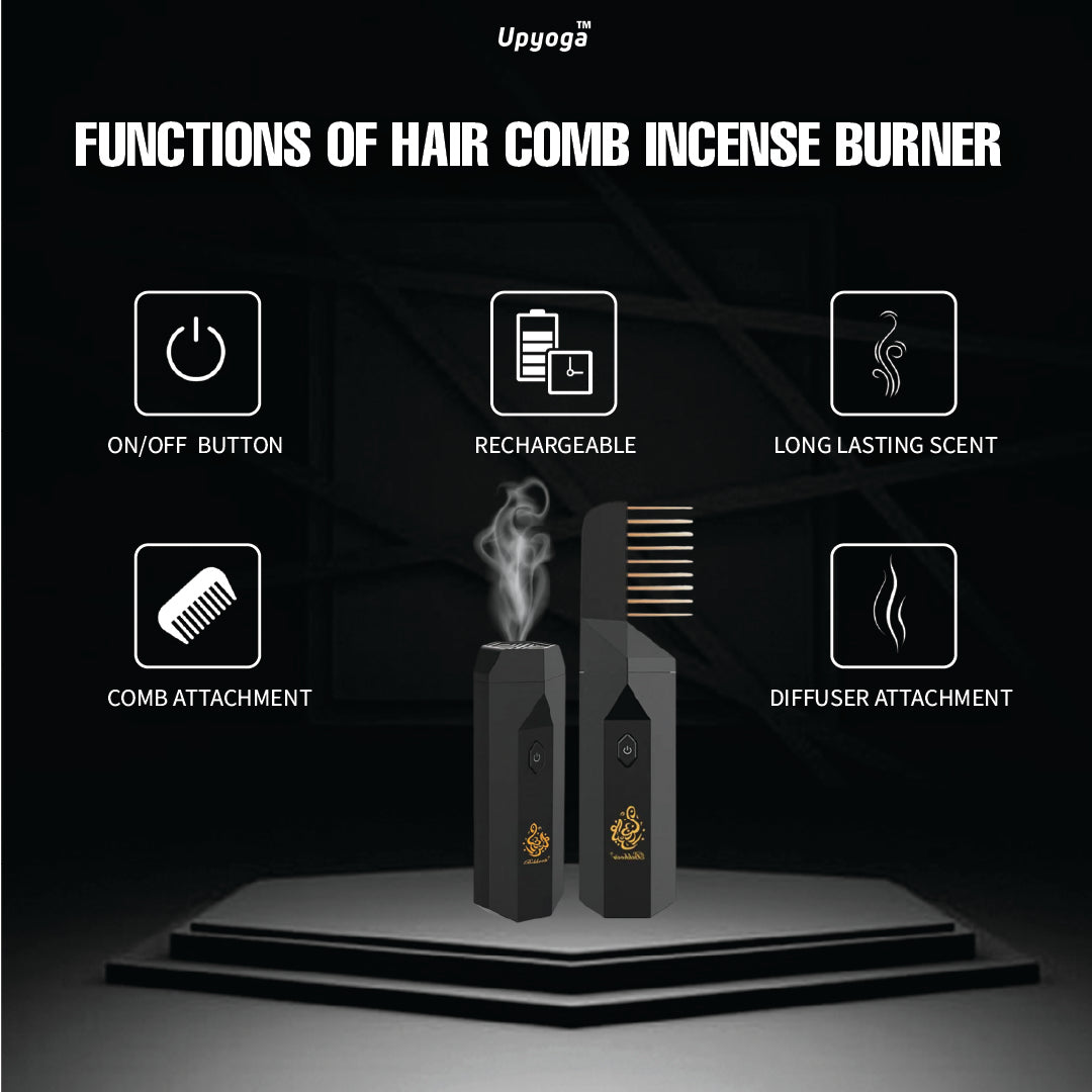 Upyoga 2 in 1 Hair Comb Incense Burner & Home Diffuser | 1 Year Warranty | Rechargeable | Bakhoor Included