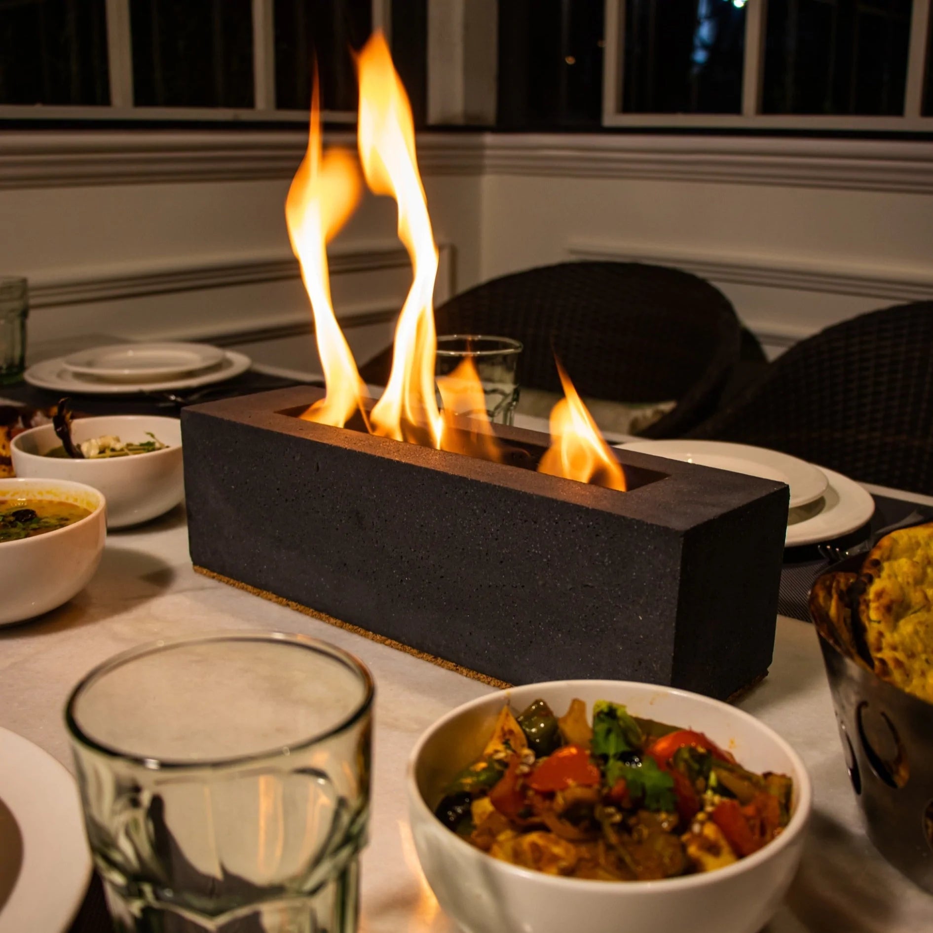 Rectangular Concrete Bio-Ethanol Tabletop Fireplace Indoor and Outdoor