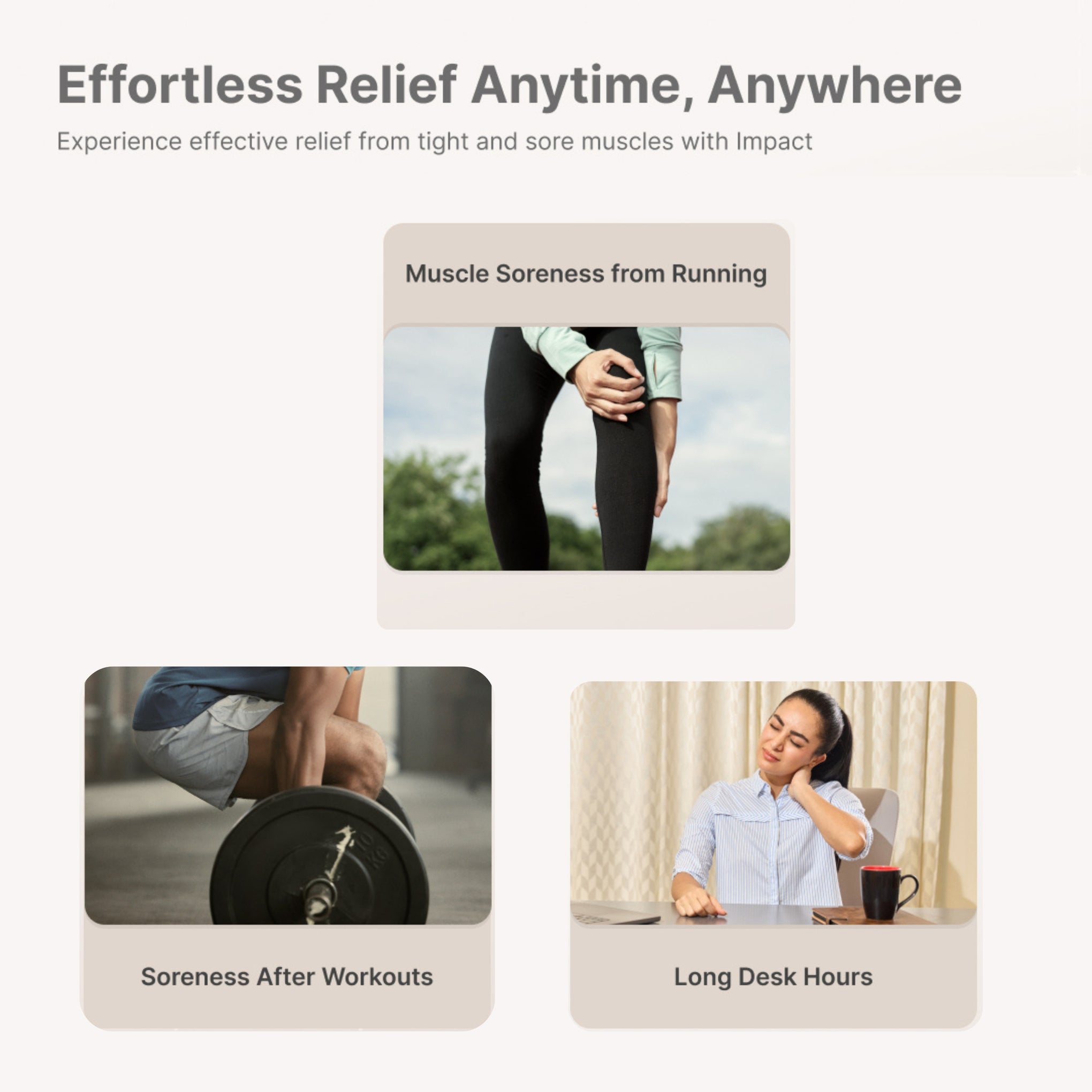Powered by a 30W high-torque motor, it delivers up to 6.5kg of deep tissue force, 4mm amplitude, and speeds reaching 3200 RPM—penetrating muscle layers to relieve soreness, stiffness, and fatigue.